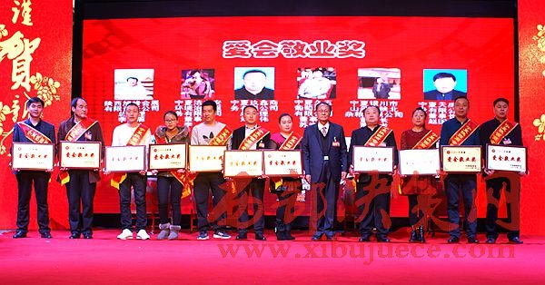 年會(huì)上,張海龍會(huì)長(zhǎng)、李明義執(zhí)行會(huì)長(zhǎng)一起向2016年新增常務(wù)副會(huì)長(zhǎng)、副會(huì)長(zhǎng)、理事授牌;商會(huì)黨支部書(shū)記、秘書(shū)長(zhǎng)王惠選宣讀了寧夏陜西商會(huì)關(guān)于表彰獎(jiǎng)勵(lì)2016年度特殊奉獻(xiàn)獎(jiǎng)、誠(chéng)信企業(yè)獎(jiǎng)、創(chuàng)新企業(yè)獎(jiǎng)、愛(ài)會(huì)敬業(yè)獎(jiǎng)企業(yè)單位的決定。自治區(qū)人民檢察院原檢察長(zhǎng)師夢(mèng)雄向榮獲商會(huì)特別奉獻(xiàn)獎(jiǎng)的張海龍會(huì)長(zhǎng)、李明義執(zhí)行會(huì)長(zhǎng)頒獎(jiǎng);張海龍會(huì)長(zhǎng)、李明義執(zhí)行會(huì)長(zhǎng)、黨支部書(shū)記、秘書(shū)長(zhǎng)王惠選分別向11個(gè)榮獲誠(chéng)信企業(yè)、11個(gè)榮獲創(chuàng)新企業(yè)、11個(gè)榮獲愛(ài)會(huì)敬業(yè)企業(yè)單位頒獎(jiǎng)。