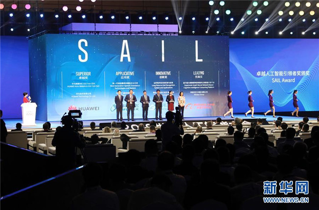 在上海舉行的2019世界人工智能大會(huì)開(kāi)幕式上,獲得卓越人工智能引領(lǐng)者獎(jiǎng)的企業(yè)代表合影(8月29日攝)。新華社記者 方喆攝