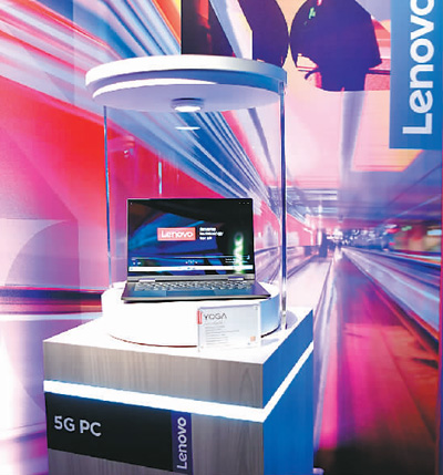 1月8日,聯(lián)想公司推出的全球首款5G電腦——“Yoga 5G”在2020年美國拉斯維加斯消費電子展上公開展示,首次將5G連接功能從智能手機領(lǐng)域拓展到高端計算領(lǐng)域。新華社記者 吳曉凌攝