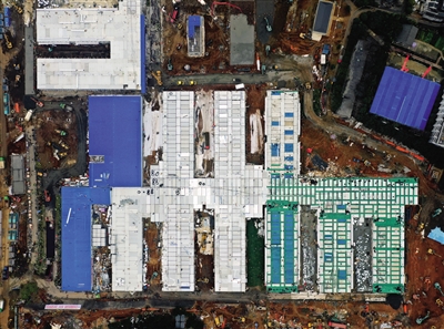 在武漢火神山、雷神山醫(yī)院建設中,基于北斗衛(wèi)星導航系統(tǒng)的高精度定位設備火速馳援,確保工地大部分放線測量一次完成。這是無人機拍攝的武漢火神山醫(yī)院。記者 李賀 攝