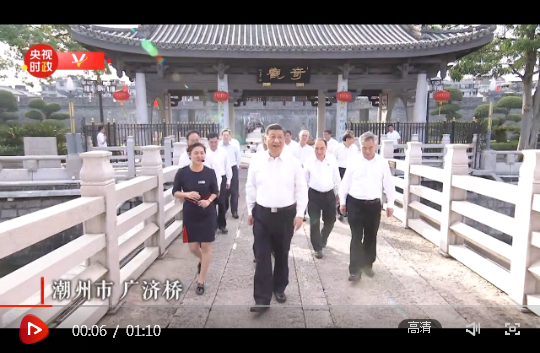 習近平總書記12日赴廣東考察調研。當天下午,他首先考察了潮州市廣濟橋、廣濟樓、牌坊街,察看文物修復保護、非遺文化傳承、文旅資源開發(fā)等情況。隨后,習近平前往潮州三環(huán)(集團)股份有限公司,了解企業(yè)自主創(chuàng)新和生產經(jīng)營情況。